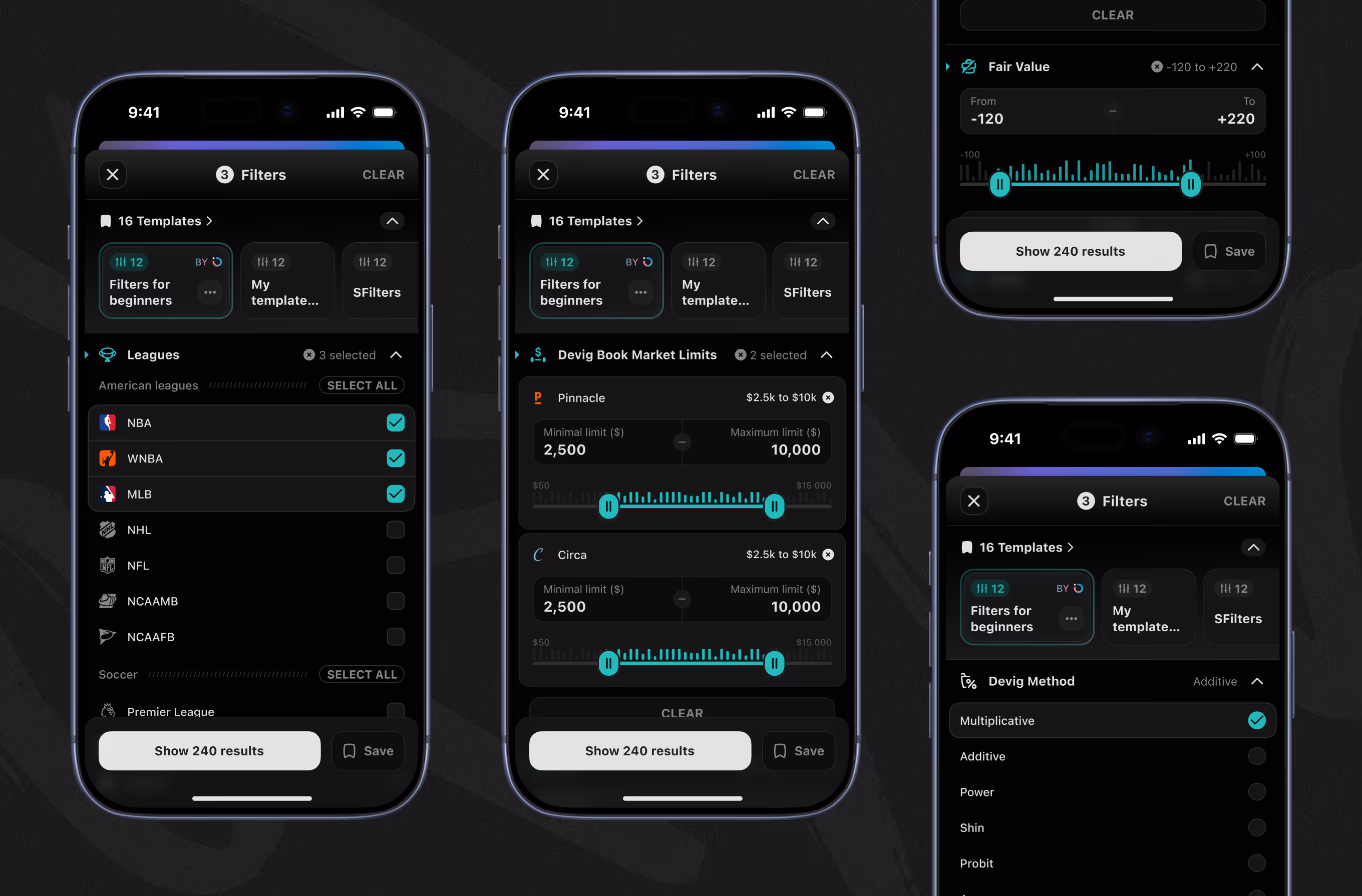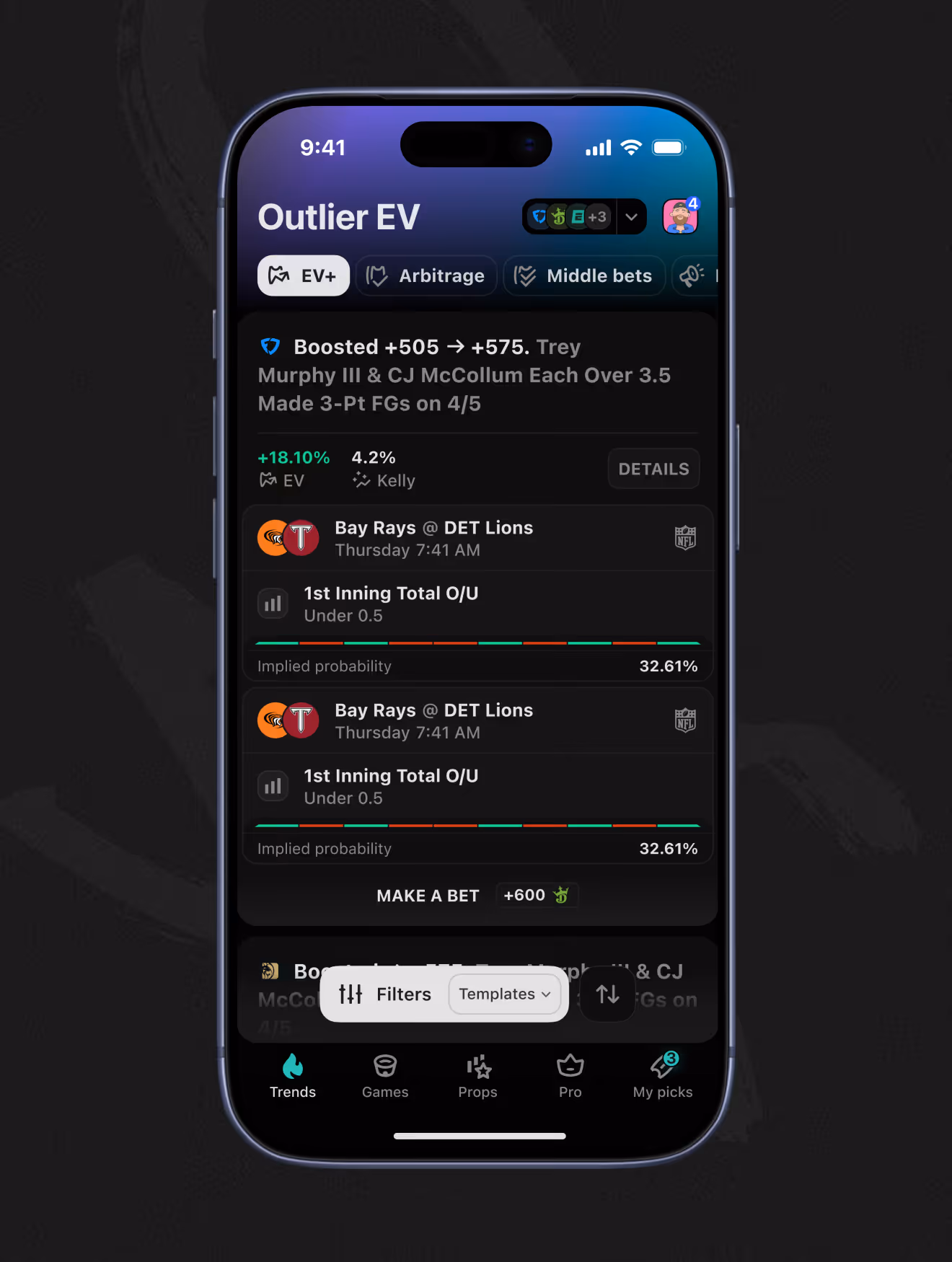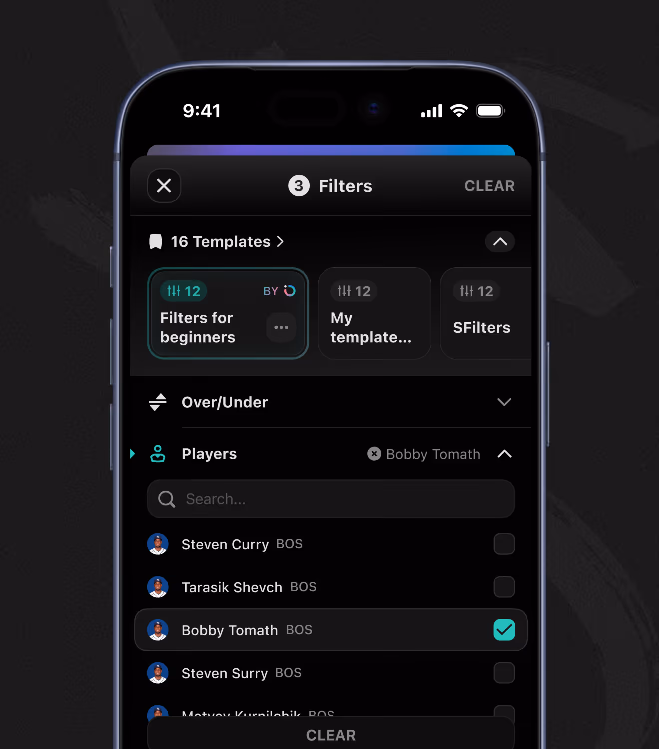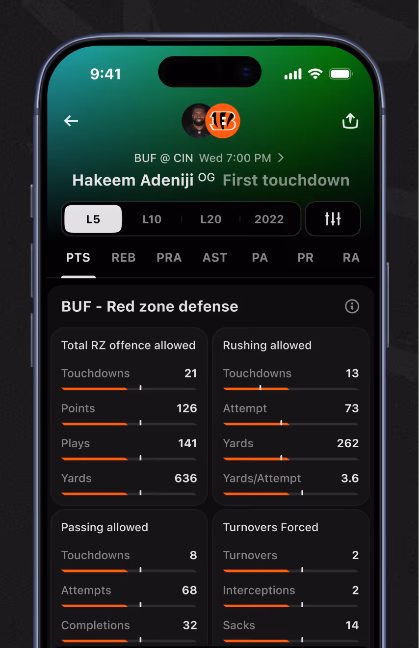 PLAYER → Props & Player Props Filters