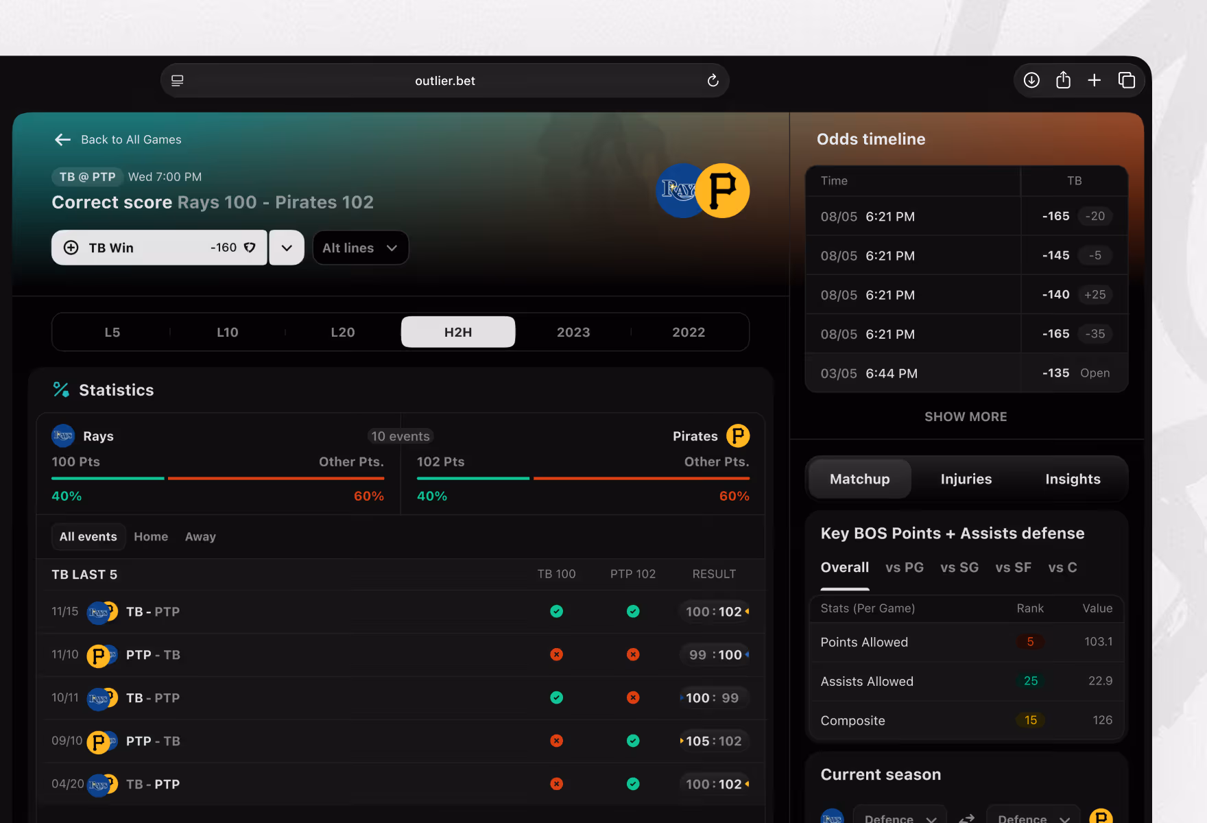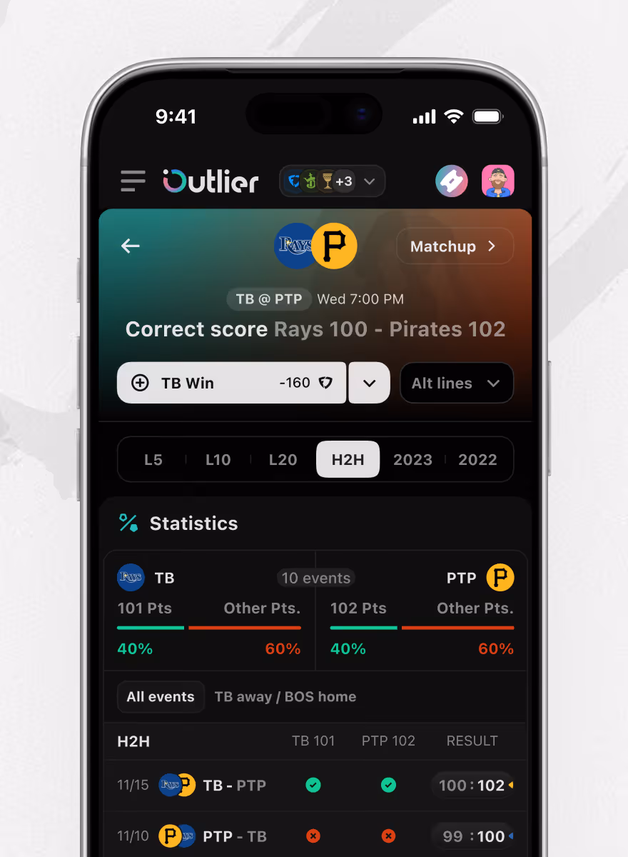 Team markets → Moneyline & total