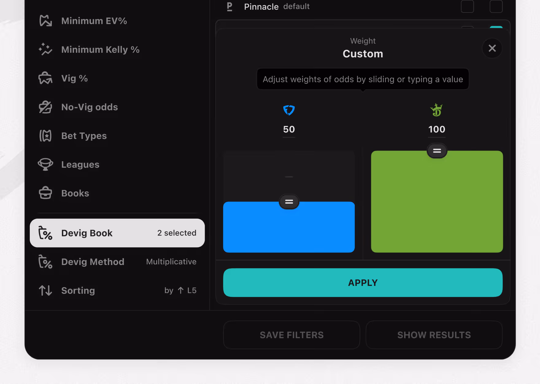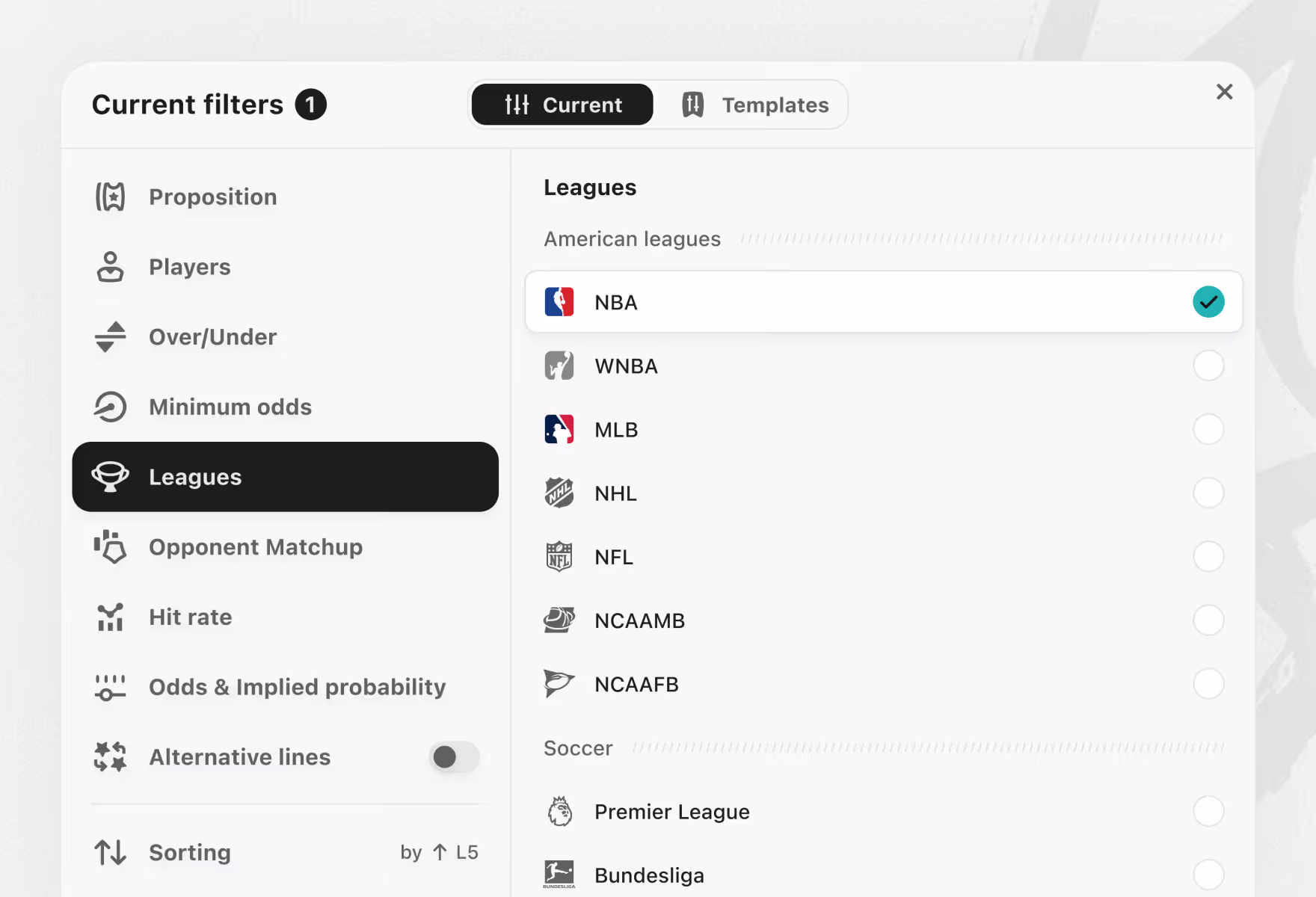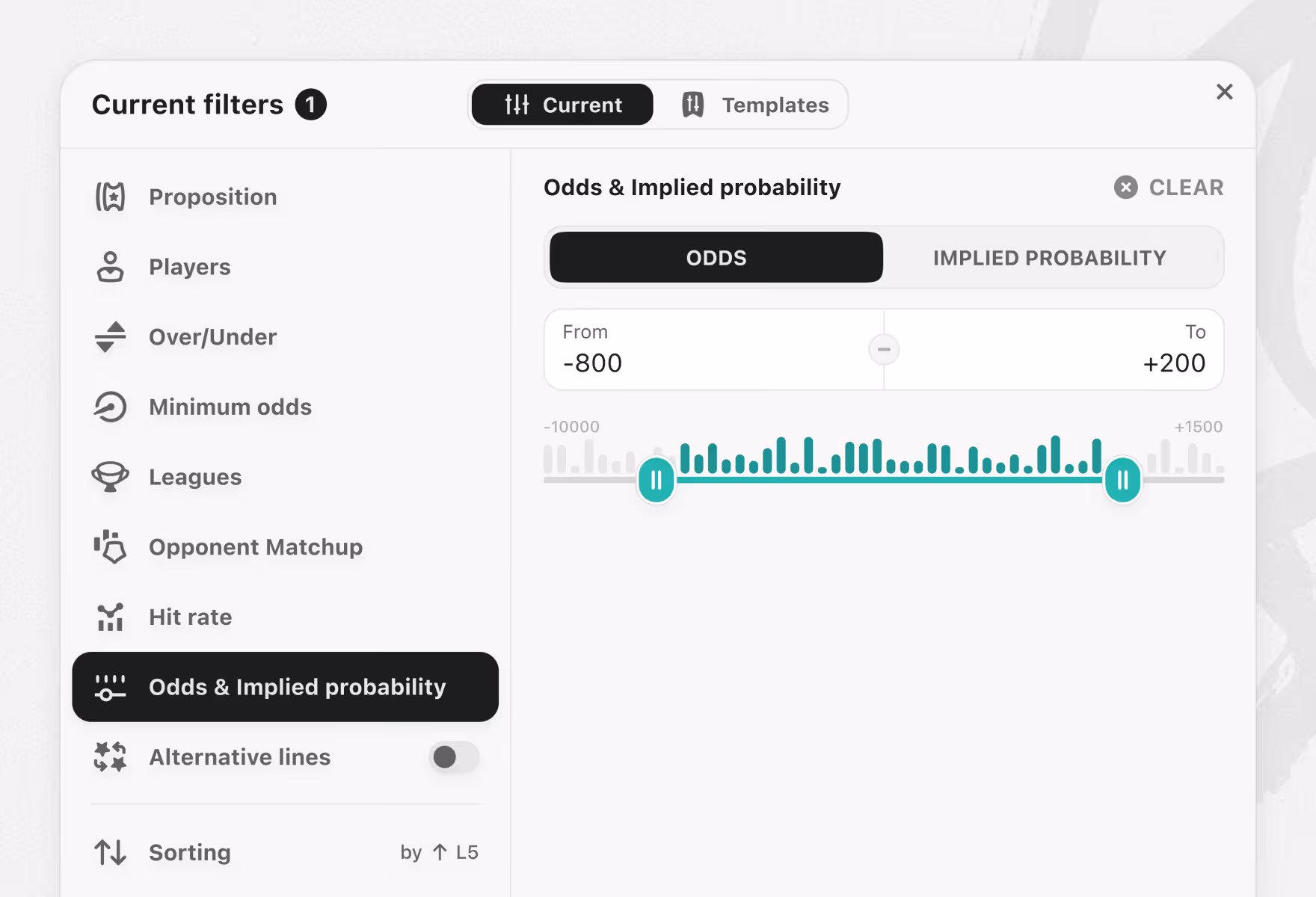 Player prop filters