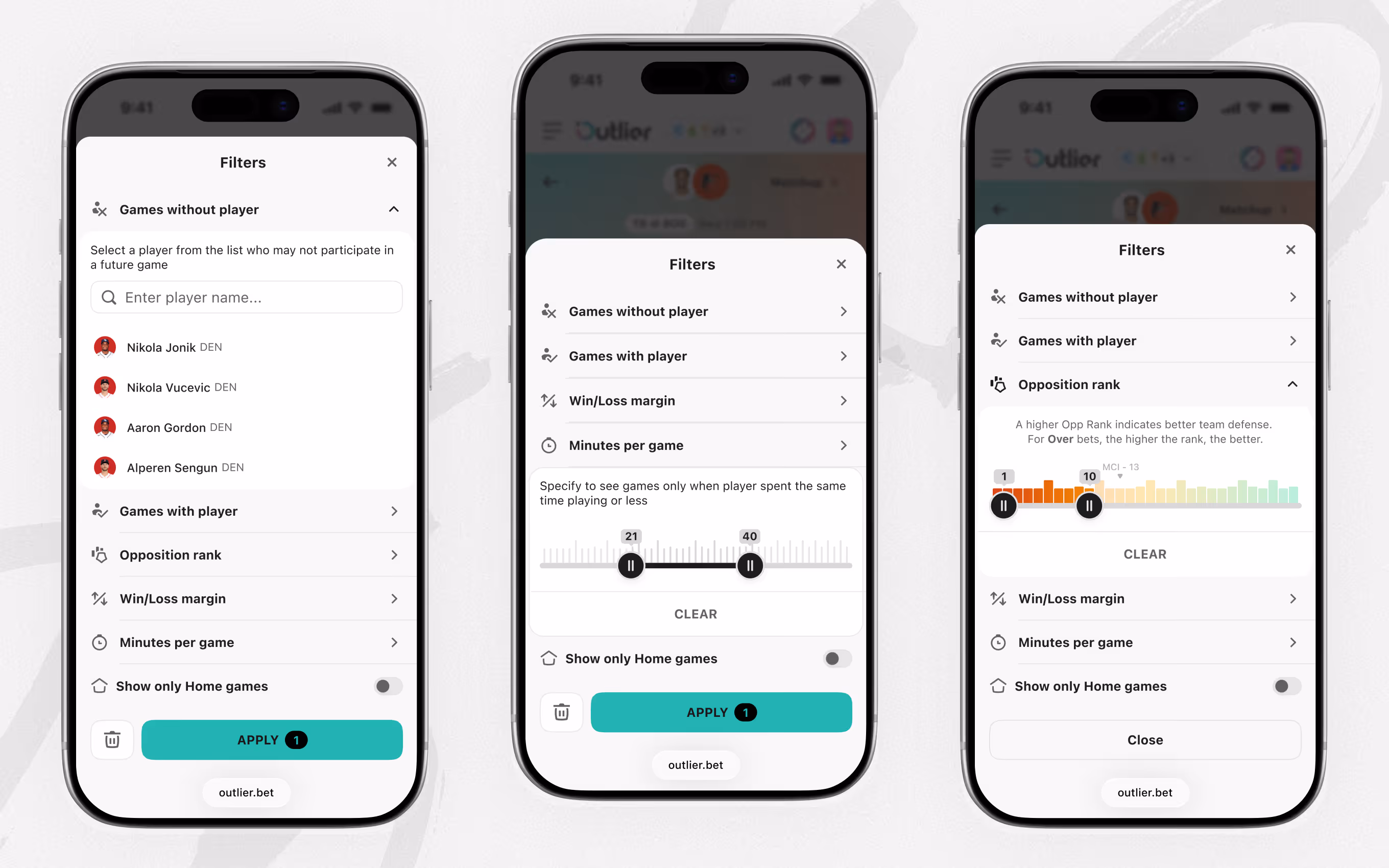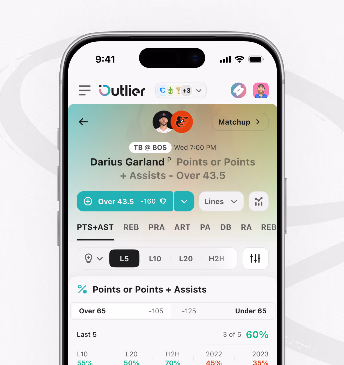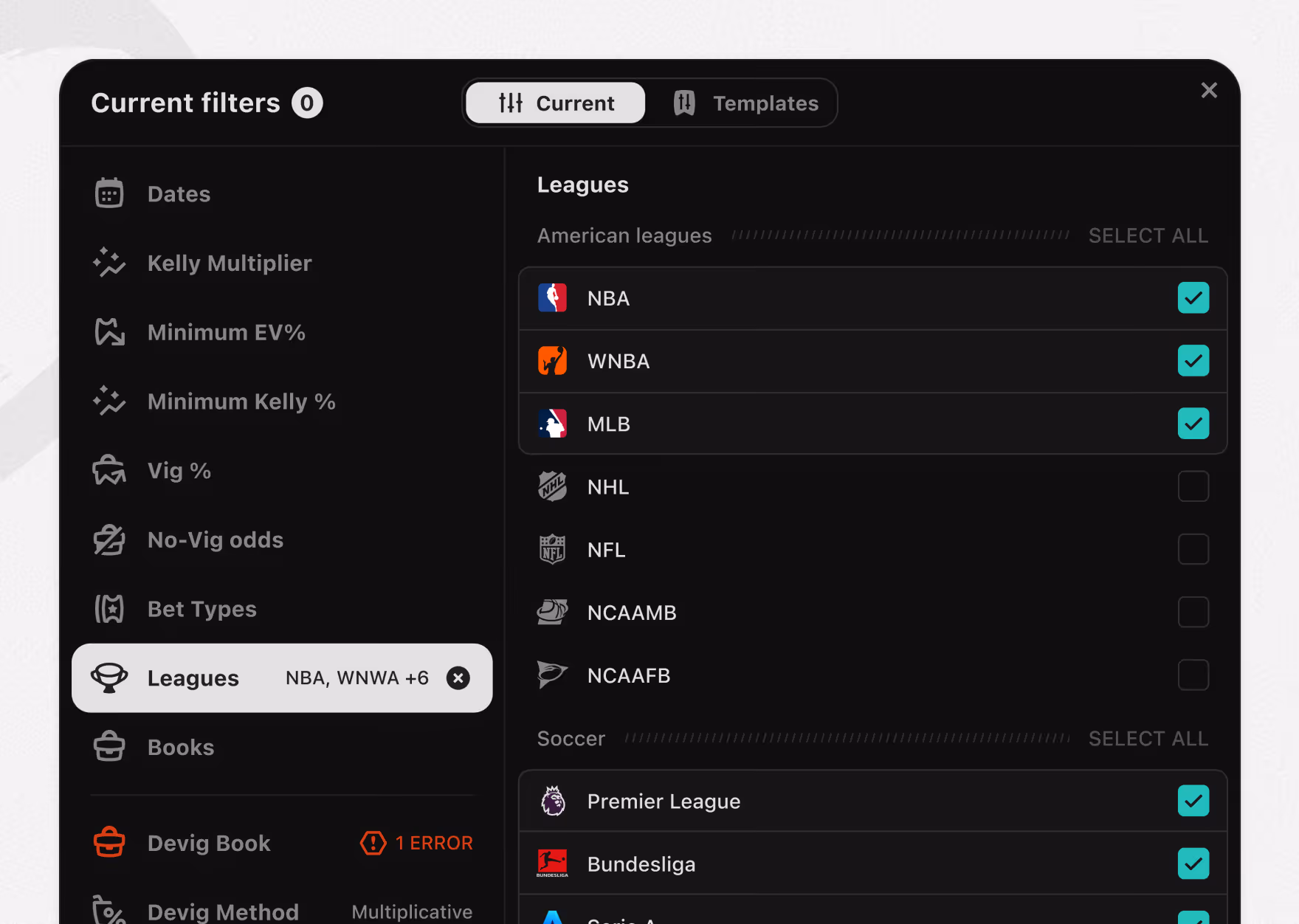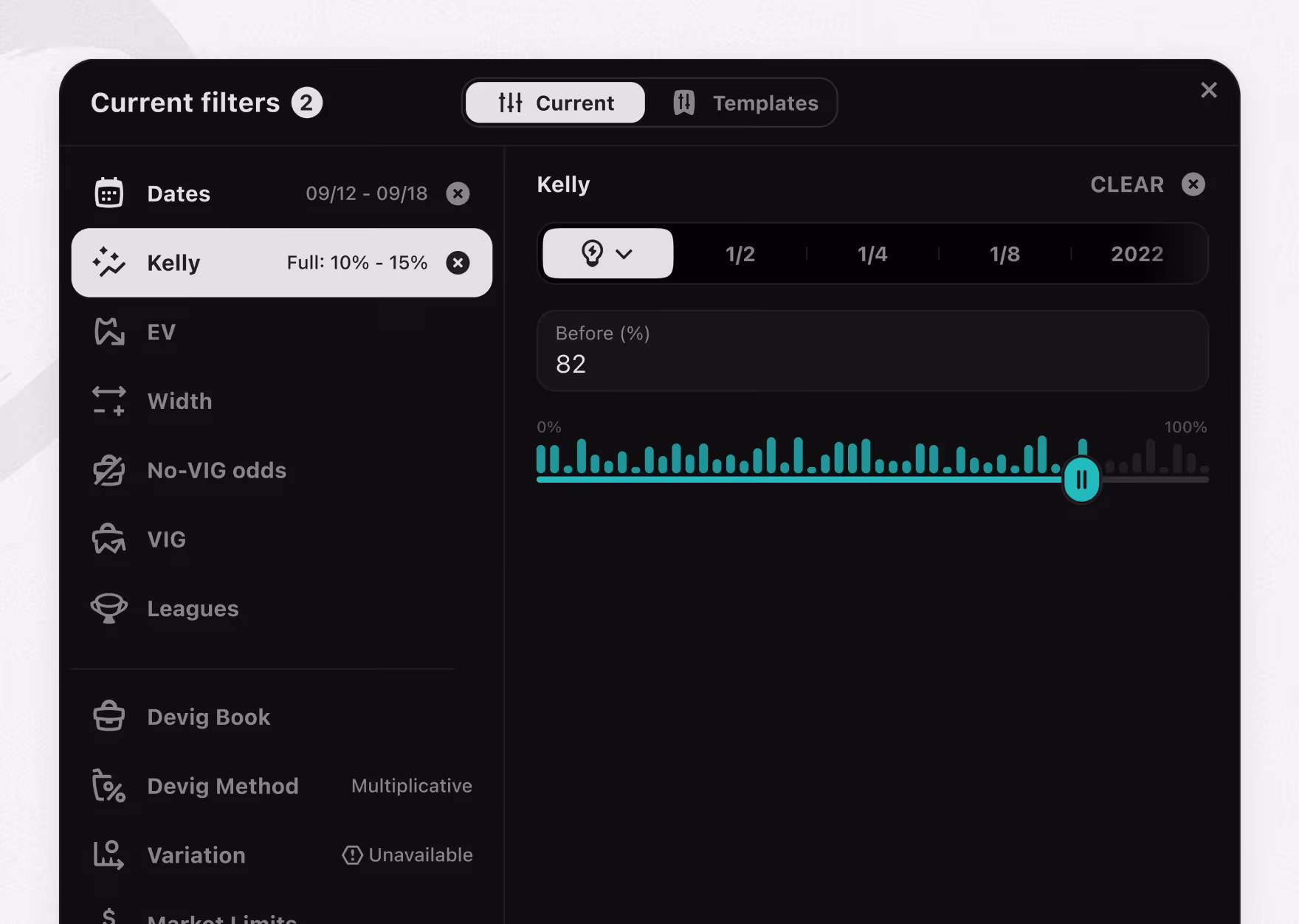 Player prop filters